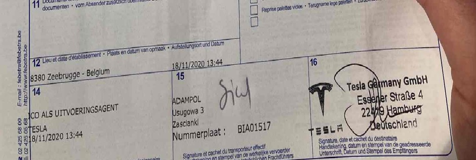 W przypadku informacji od dealera Tesli o zmianie miejsca rozładunku