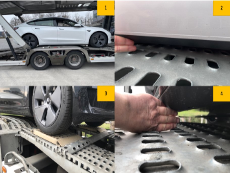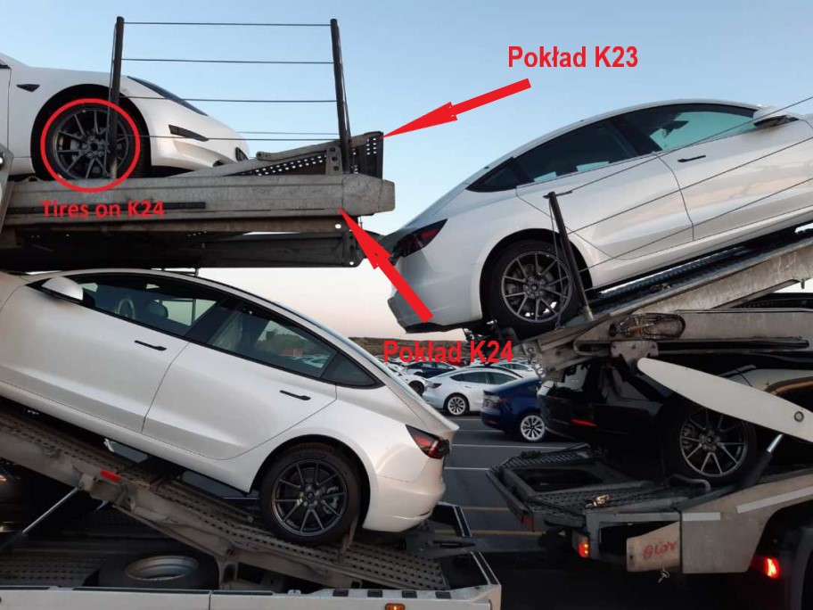 Ze względu na niski prześwit pojazdów Tesla Model 3 należy zachować wszelkie środki ostrożności. Szczególną uwagę trzeba zachować przy przejeżdżaniu pojazdem po pokładach autotransportera oraz pozostawianiu auta na czas transportu, w miejscach, gdzie następują duże spadki i przełamania. Na górnym pokładzie przyczepy zabudowy Lohr, producent zabudowy rekomenduje pozostawienie całego pojazdu Tesla model 3 na pokładzie K24. Na elementach ruchomych i przełamaniach można użyć specjalnych platform (jeżeli są na stanie autotransportera), aby uzyskać płaską powierzchnię przejazdu.