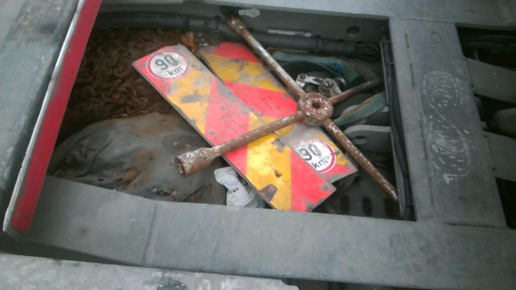 Przewożenie luźnych elementów w przestrzeni ładunkowej (koła zapasowe ciągnika mogą być zamontowane tylko na fabrycznych stojakach)