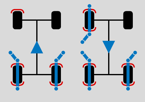 - Diagonalnie do tego koła zamocować dwa kliny po obu stronach odpowiedniego przedniego koła.